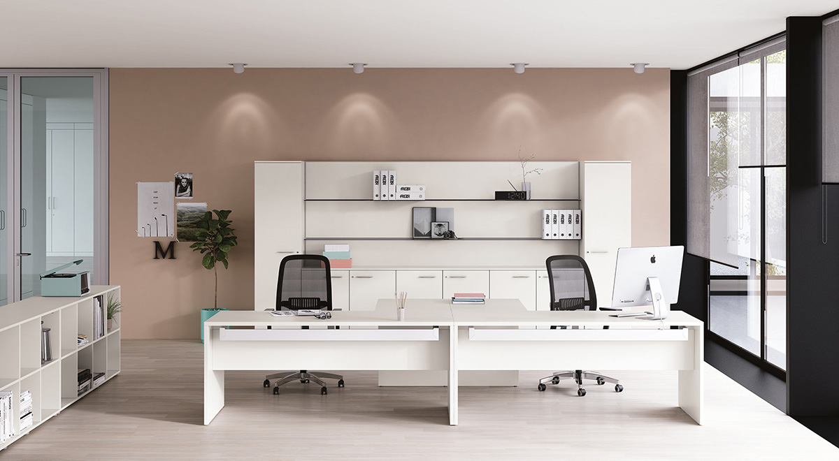 Frezza’s Pop collection is a response to the market’s requirement for a smart, functional, cost-effective, essential office system. Whilst simple, Pop is still imbued with Frezza’s eye for design and quality, and offers the customer a wide range of personalisation with four types of legs (the Goalpost, the Panel, the Hoop and the Tee), free-standing and supporting cupboards and bookcases, a variety of finishes, and a 3-week lead time.
